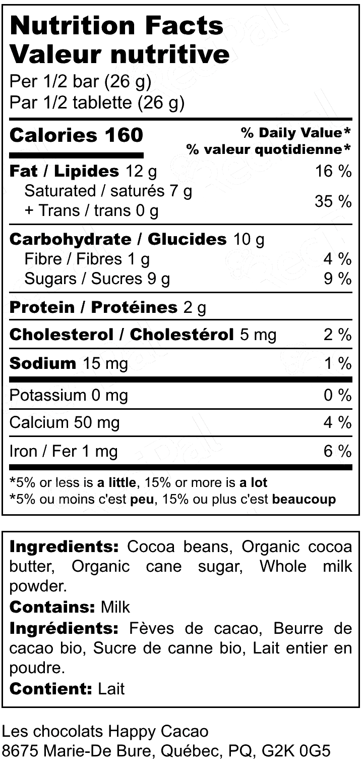 Le "Dark Milk" est un chocolat au lait à forte teneur en cacao, donc plus goûteux et moins sucré que le chocolat au lait traditionnel. Les fèves de cacao dans cette tablette viennent d'une ferme de 500 hectares en Équateur dont l'objectif est la préservation du cacao "Arriba Nacional", jadis en voie de disparition. Chocolat au goût de noisettes grillées avec des touches de dulce de letche apportées par la torréfaction du lait entier en poudre.